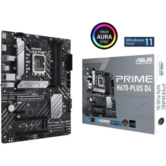 Материнская плата ASUS PRIME H670-PLUS D4 Retail (Intel, H670, S - 1700, ATX, Dual channel DDR4-5066*, 4 slots, (до 128 GB), SATA: 4, SATA600, 4 - RAI