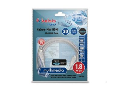 Кабель HDMI видео и аудио сигналов Belsis High Speed HDMI with Ethernet (HDMI Type A (male) - Mini HDMI (male), 1.8 м, серый, ферритовые кольца, экран