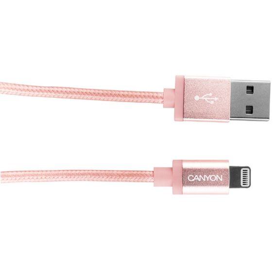 Кабель USB (M) - Lightning 8 pin Canyon MFI CNS-MFIC3RG (розовое золото, синхронизация и зарядка, 1м, плетеное покрытие) [ RHCNSMFIC3RG ]