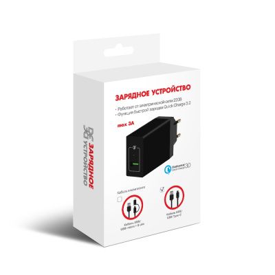 Зарядное устройство сетевое DF Tor-02 (черный, 3-1,5A, 6,5V, 1xUSB, Quick Charge 3.0, USB-кабелем (120 см) USB Type-C)