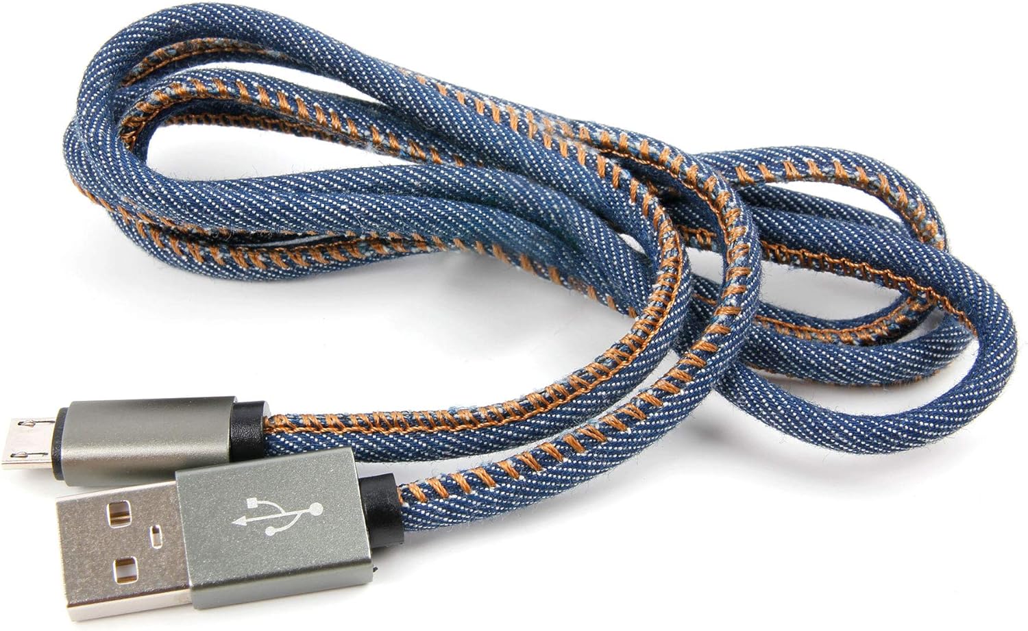 Кабель USB 2.0 DF uJeans-01 (USB Type A (male) - microUSB Type B (male) + адаптер Lightning, 1.5 м, темно синий, прочная оплетка из джинсовой ткани)