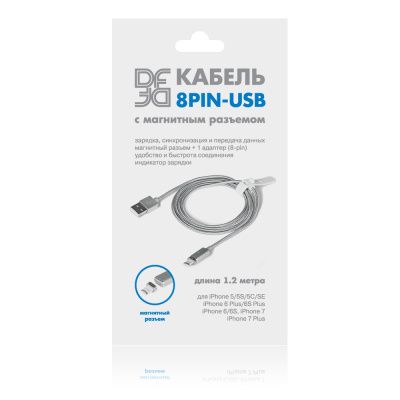 Кабель с магнитной насадкой DF iMagnetCable-01 (USB Type A (male) - Lightning 8 pin, 1.2 м, серебристый, Lightning 8 pin - магнитная вставка, 2,4А, не
