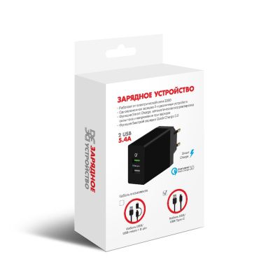 Зарядное устройство сетевое DF Tor-04 (черный, 3-1,5A, 6,5V, 2xUSB одновременная зарядка 2-х различных устройств,Smart Charge, Quick Charge 3.0, USB-к