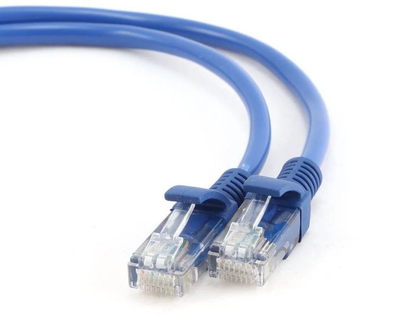 Патч-корд (UTP, Кат.5E, 1 м) Gembird Cablexpert [ PP10-1M/B ] (4 пары, RJ-45, ПВХ, литой, медный, синий)