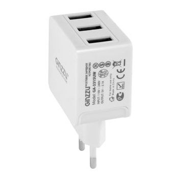 Зарядное устройство сетевое Ginzzu GA-3315UW (белый, 3 USB, 5В/3.1A) [ GA-3315UW ]