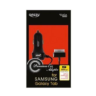 Зарядное устройство автомобильное Ginzzu GA-4315UB (АЗУ 5В/3.0A, 2USB,кабель Galaxy Tab)