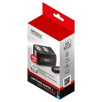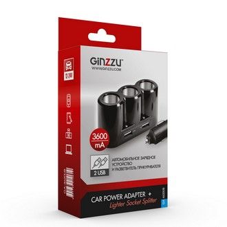 Зарядное устройство автомобильное + две авто розетки Ginzzu GA-4620UB (АЗУ 5В/3.0A, 2USB, 3 авто-розетки + удлинитель 100 см) [ GA-4620UB ]