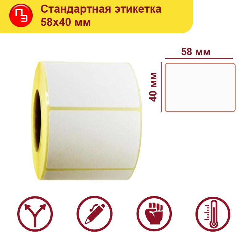 Этикетка полуглянцевая (58*40 (600шт) втулка 40мм, белые 1 рулон)