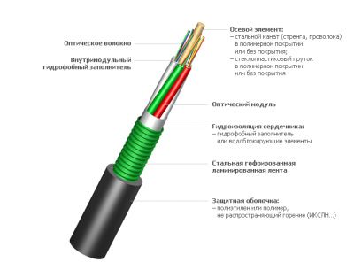Кабель оптический (8 волокон, 9/125 мкм) [ ИКСЛ-М4П-А8-2,5 ] (бронированный стальной лентой, черный)