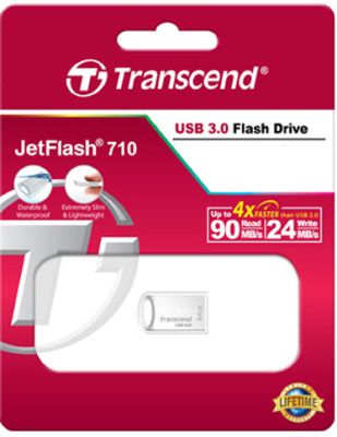 Флэш-накопитель 64 GB Transcend JetFlash 710 (серебристый, сталь, 24 MB/s 90 MB/s 22x12x6 мм, микроформат, TLC-память, USB 3.0 Type-A) [ TS64GJF710S ]